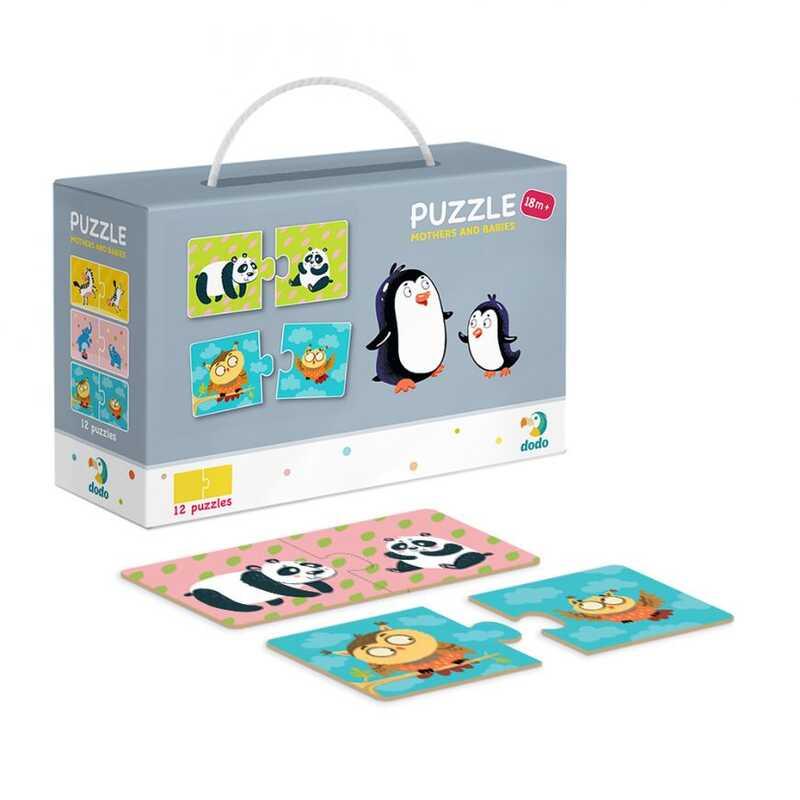 З логічними пазлами “Мама і малюк” Ваша дитина познайомиться з назвами представників тваринного світу та їхніх дитинчат. Малюкові необхідно поєднати тематичний ланцюжок-пазл, кожен з яких складається всього лише з 2-х елементів. Наприклад: у мами левиці є маленьке левеня, а у пінгвіна – пингвиненя, а у ведмедя, хто? Нехай малюк спробує самостійно підібрати потрібну картинку! Таким чином гра з пазлами сприятиме розвитку логіки, мислення, а також допоможе бути більш самостійним і цілеспрямованим. Набір складається з 24 яскравих елементів, які виконані зі щільного пресованого картону. Пазли укомплектовані в невелику коробочку зі зручною ручкою для перенесення.