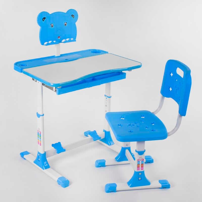 Размер рабочей поверхности 70х35 см. Общий размер столешницы 70х49 см.Высота парты регулируется от 60 до 70 см.Высота стульчика регулируется от 35 до 40 см. Ножки стола – пластиковые.Угол наклона столешницы регулируется. Ножки стола – металлические.