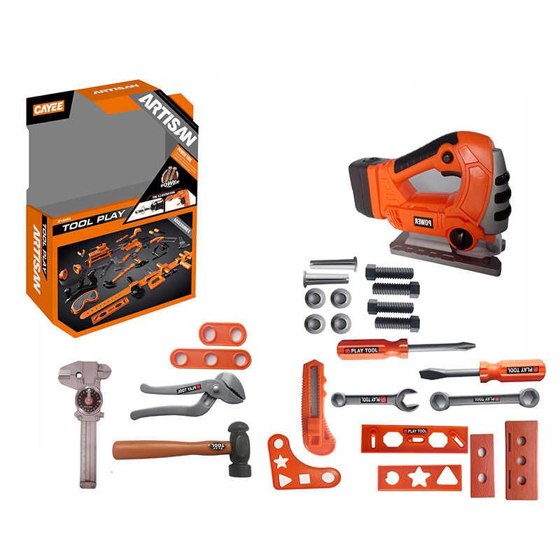 Аби інструменти були під рукою, а полагодити та відремонтувати завжди знайдеться що! Набір має реалістичний деталізований дизайн, тому іграшкові інструменти дуже схожі на справжні. Іграшки виконані з пластику, в ремонтно-будівельній тематиці. Серед них – автоматичний лобзик, молоток, викрутки, гайковий ключ, болти та багато чого іншого. Імітація роботи електричного лобзика робить ігровий процес захопливим та цікавим.