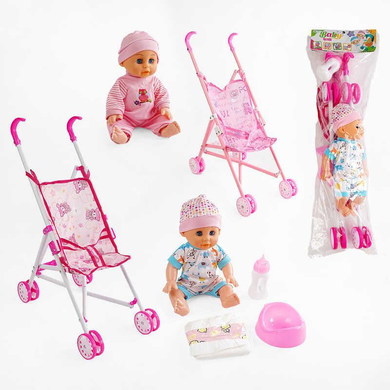 Пупс із візком LZX 17 T-11 2 види, музичний чіп, закриває очі, п’є з пляшечки, ходить на горщик,…