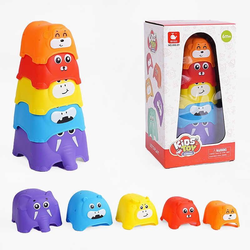 Пірамідка з приємним кольоровим забарвленням – чудова розвивальна іграшка для найменших. Іграшка включає 5 ігрових елементів, де кожна окрема частина – кумедна тваринка. Під час складання конструкції малюк розвиватиме дрібну моторику рук, вивчатиме назви кольорів та буде знайомитись зі світом тварин.