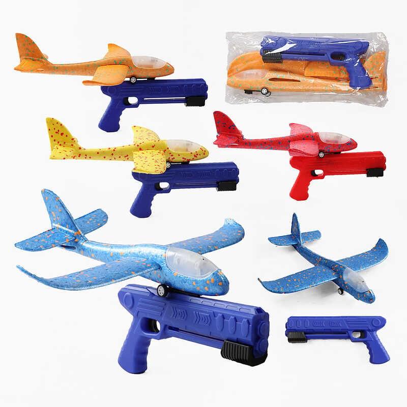 Пістолет із запускачем C 70878 4 кольори, літак, на колесах, пістолет, пусковий механізм, механіч…