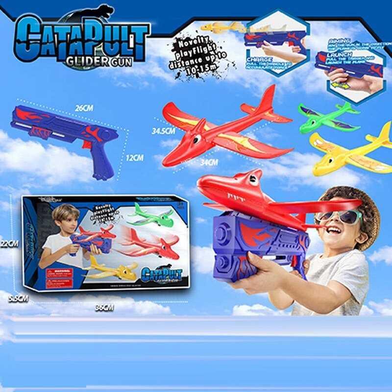 Ігровий набір «Катапульта з літачками» — це динамічна гра, що подарує море емоцій юному пілоту! У наборі є спеціальний бластер і легкий планер, який можна запускати на відстань до 15 метрів. Просто заряджай, наведи, стріляй — і спостерігай, як літачок стрімко злітає в небо!