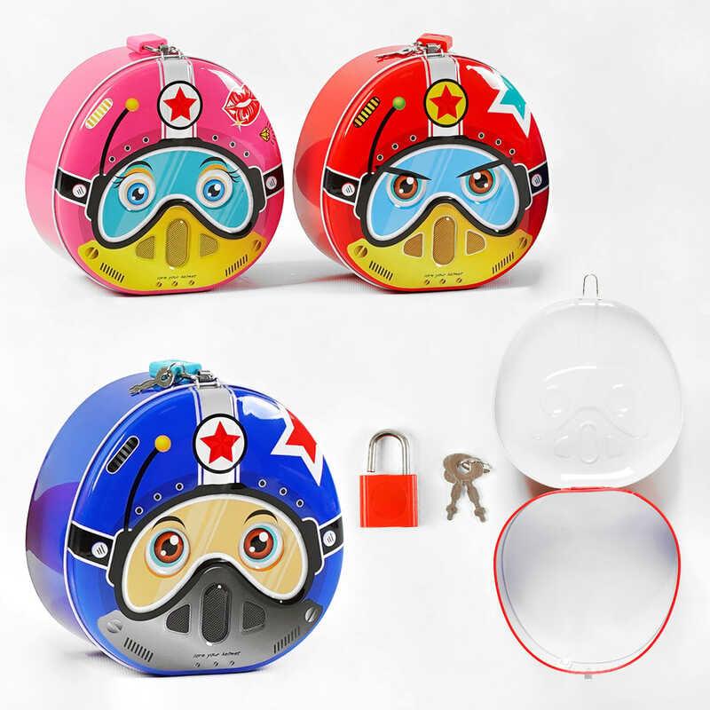 Скарбничка виготовлена з металу, що робить її довговічною і зручною у користуванні. Вона закривається на маленький замочок, відкрити який можна за допомогою мініатюрного ключика, представленого у комплекті.