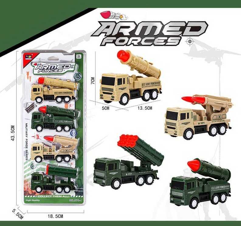 Набір сучасної військової техніки включає 4 машинки спеціального призначення. Виконані з первинного пластику, вон відрізняються чудовою деталізацією: іграшкові моделі точно передають всі елементи справжнього аналога та мають відповідне тематичне забарвлення.