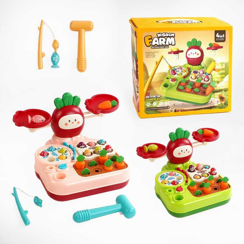 Яскравий та цікавий ігровий набір має безліч функціональних елементів – кожна його сторона виступає окремим захопливим інтерактивом для допитливих малюків. Наприклад, можна взяти молоточок і “зловити” кротів, а можна садити та збирати врожай у вигляді моркви, а можна ловити невгамовних рибок на магнітну вудку! Очолює таку незвичайну ігрову платформу балансир, який може захопити дитину на довгий час.