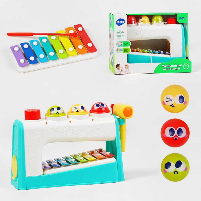 Кольорова стукалка від ТМ “Hola” має одну суперсилу – швидко привернути увагу дитини та затримати її на довгий час. Іграшка виконана у вигляді швейної машинки та містить 2 забавки: стукалку та ксилофон. Виробнику “Hola” вдалось не тільки гармонійно поєднати 2 різні ігри, а зробити так, щоб вони взаємодіяли: кольорові кульки падають прямо на ксилофон, утворюючі мелодійні звуки.