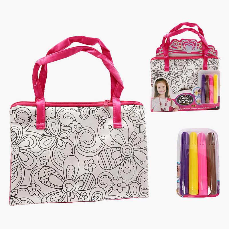 Сама собі стиліст і дизайнер! Розмалюй сумочку так, як хочеться, перетворивши її на яскравий та оригінальний аксесуар! Виріб виготовлений із текстилю та застібається на блискавку. Завдяки двом ручкам сумочку зручно носити. До набору додані чотири мініфломастери різних кольорів.