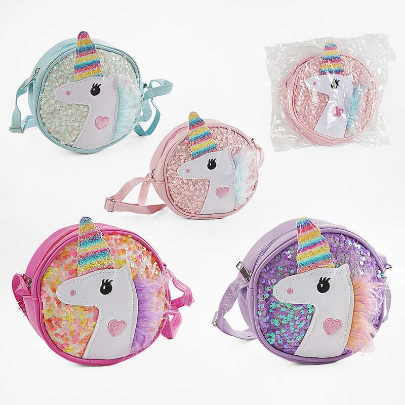 Додайте яскравих барв до образу вашої красуні за допомогою стильної сумочки із яскравими деталями! Аксесуар поєднує в собі незвичайний дизайн, компактний розмір та зручну форму. Сумочка прикрашена блискітками та декоративними елементами. Застібається на блискавку. Довжину ремінця можна регулювати.