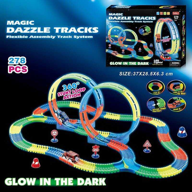 Трек 127 278 деталей, машинка на батарейках, підсвічування, неоновий трек, в коробці
