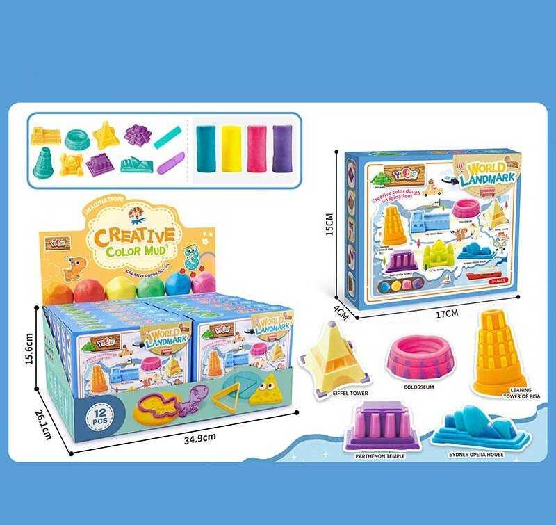 Тісто для ліплення 5831 C ЦІНА ЗА 12 ШТУК В БЛОЦІ, 4 кольори тіста, форми, приладдя