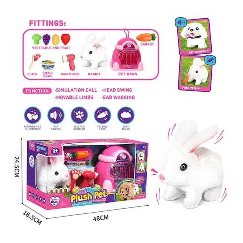 Зустрічайте чарівного пухнастого друга – інтерактивного кролика з набором аксесуарів! Ця мила іграшка допоможе дитині поринути у світ турботи про домашніх улюбленців. Кролик рухає хвостиком, головою та лапками, видає звуки. У комплекті є всі необхідні інструменти для догляду, такі як гребінець, фен, мисочка та навіть переноска. Така іграшка не лише розважає, але й сприяє розвитку уяви, соціальних навичок та відповідальності.