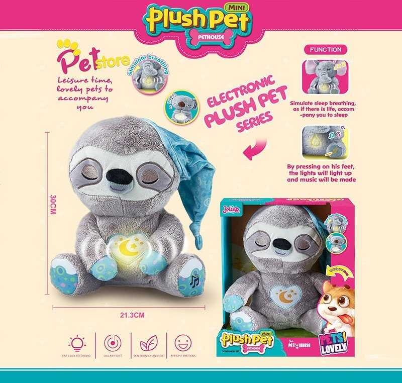 Інтерактивна іграшка MC 1109 “Лінивець”, висота 30 см, підсвічування, сплюшка, мелодія, дихає, на…
